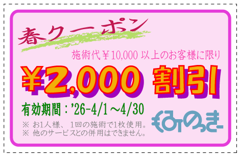 ・クーポン部分をお見せにならない場合は、割引の適応外になりますので、ご注意ください。